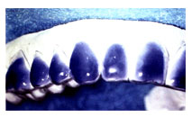 เมื่อทันตแพทย์พิมพ์ปากท่านแล้ว จะนำไปทำถาดฟอกสีฟัน โดยจะทำที่สำหรับเป็นที่อยู่ของน้ำยาฟอกสีในที่จะทำการฟอก (แนววัสดุสีน้ำเงิน) ถาดฟอกสีฟันนี้ จะจำเพาะในแต่ละคน ทำด้วยพลาสติกที่บางหรือนิ่ม สะดวกสบายเมื่อใส่